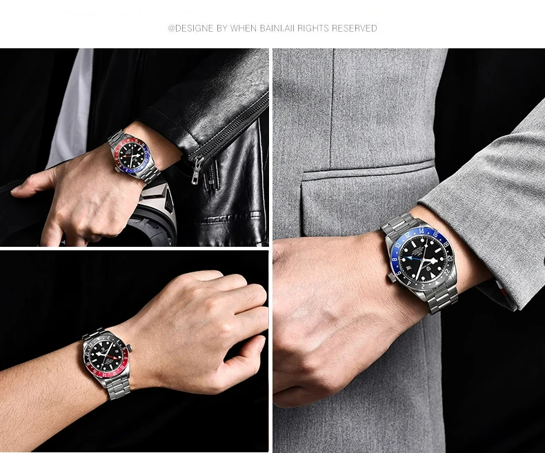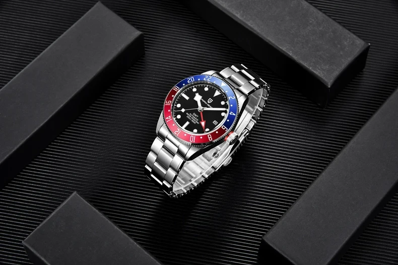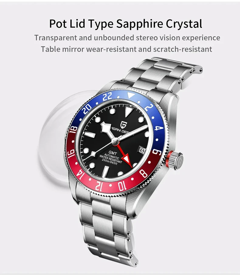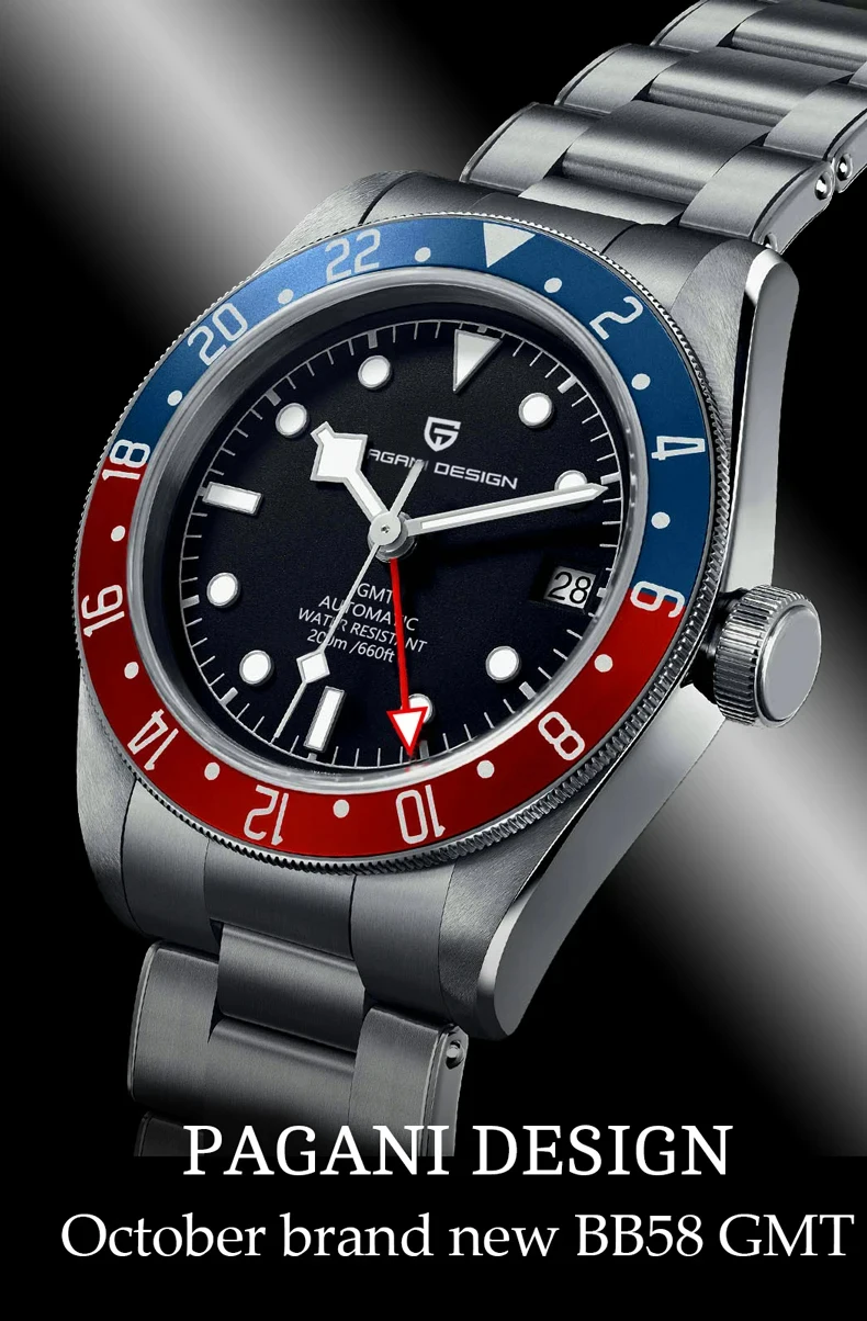 ●Automatic watch for men:This new PAGANI BB58 GMT design is inspired by its tribute brand, Classic Pepsi red and blue bezel and retaining all the iconic details of the brand's watches. A perfect example of modern renewal without losing any retro or traditional charm.