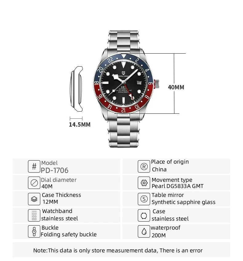 ●2024 New PD-1706 GMT Automatic watch for men, Continuing the classic design again BB58.