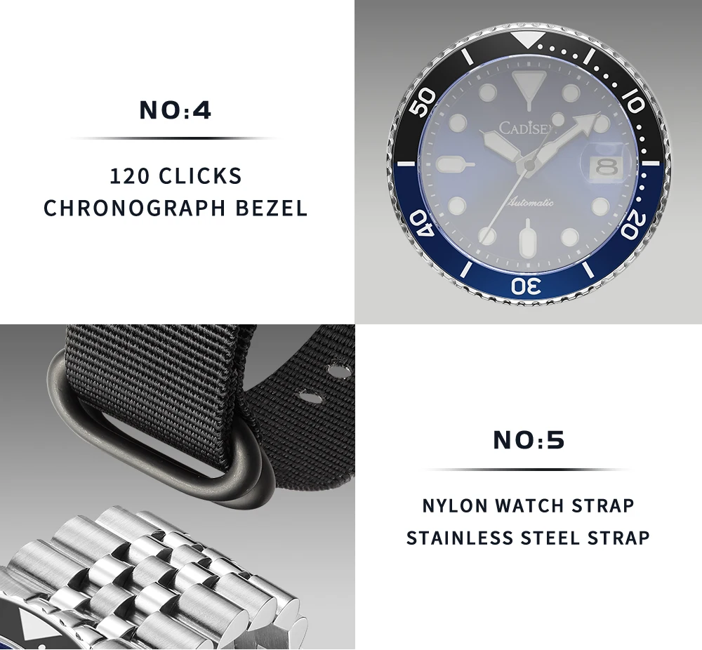 New Luminous Men Mechanical Wristwatches Ceramic Bezel Sapphire Glass NYLON Band Automatic Watch Men Relogio Masculino