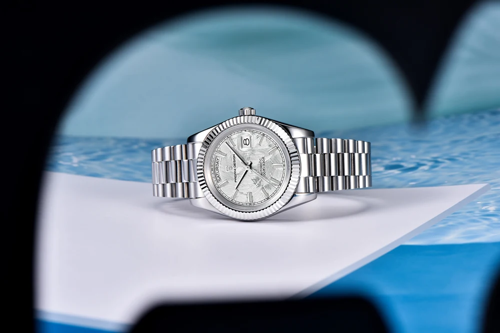 The other DD40 uses a unique nail bar gem with a black surface along with all the gold and diamond hour markers that is not only extravagant. But also full of personality
