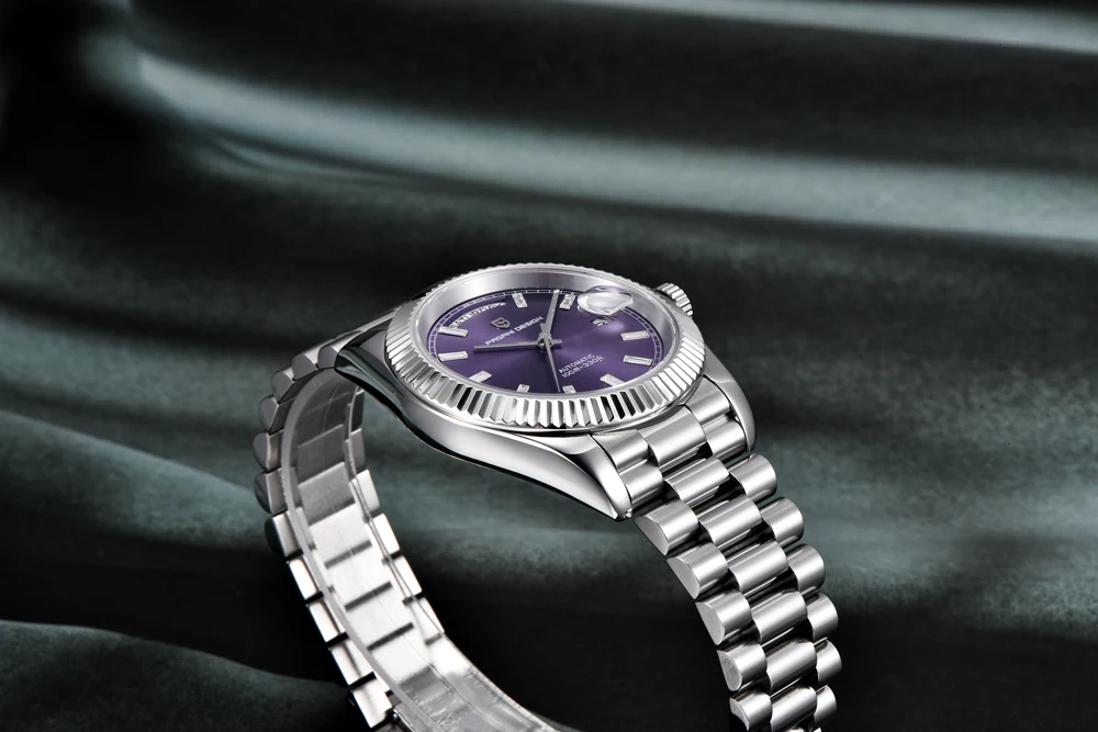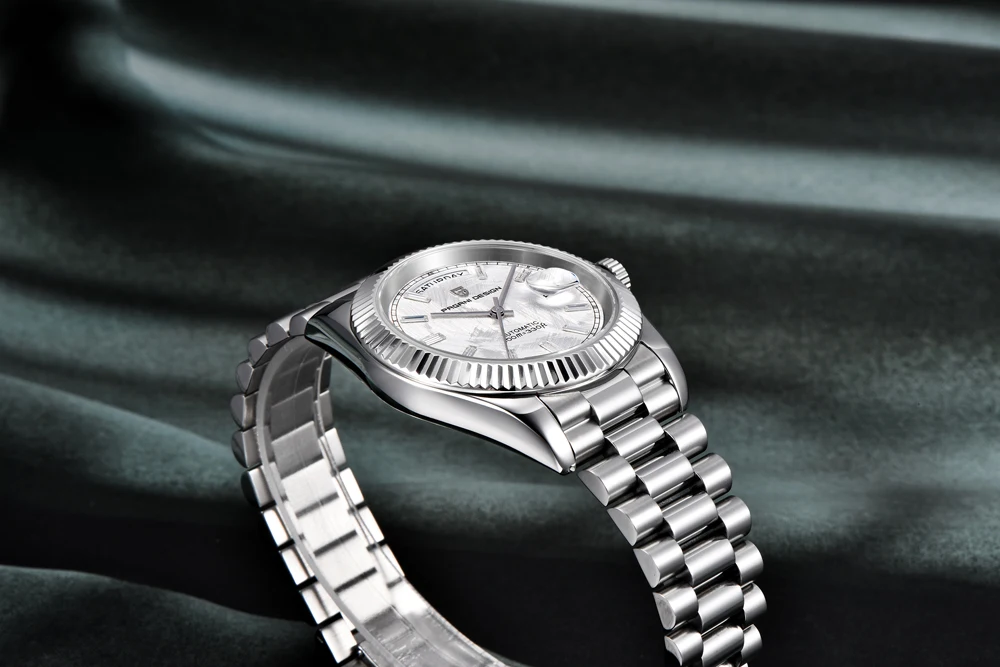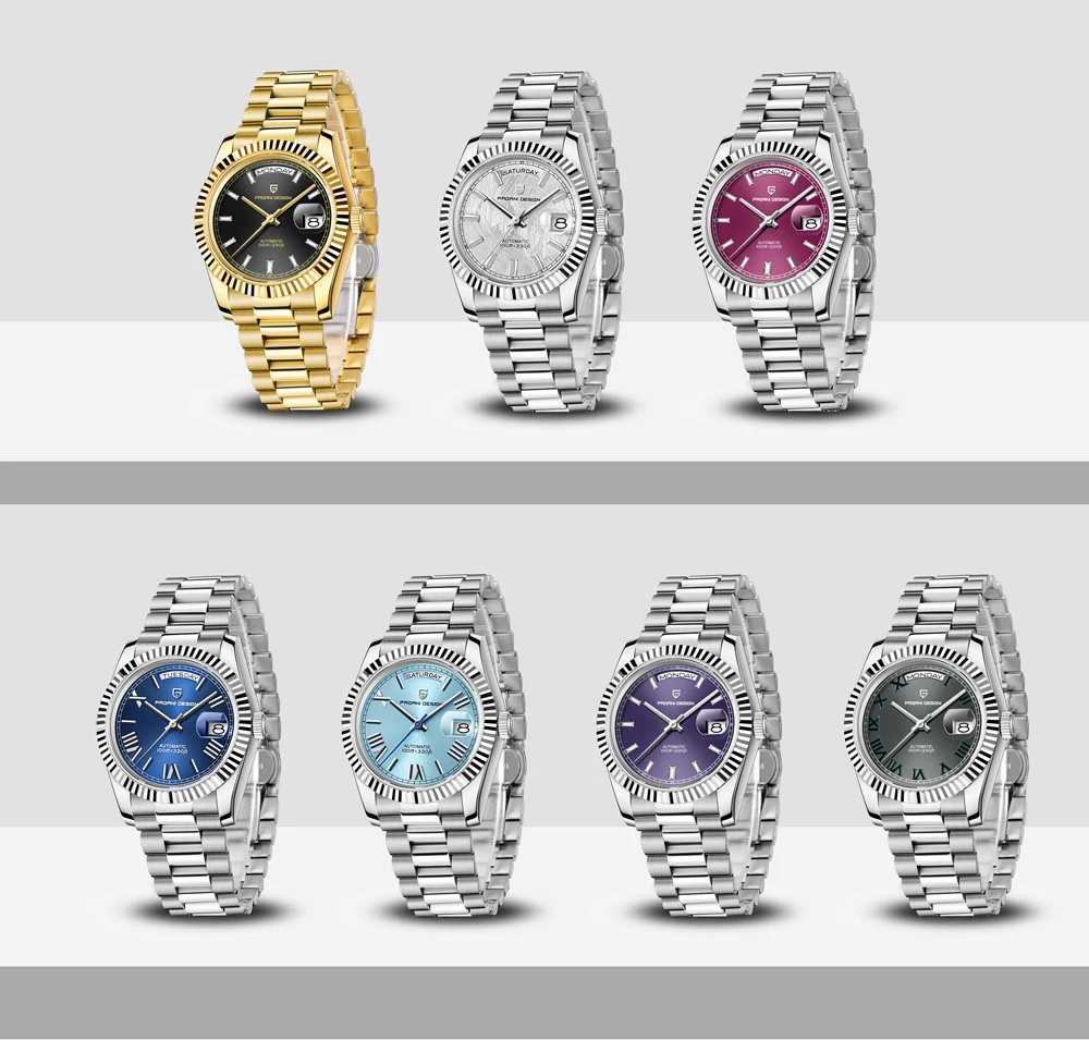 Rose Gold Men'S Automatic Watches NH36 Mechanical Stainless Steel Luxury Wrist Watch for Men Waterproof AR Coating
